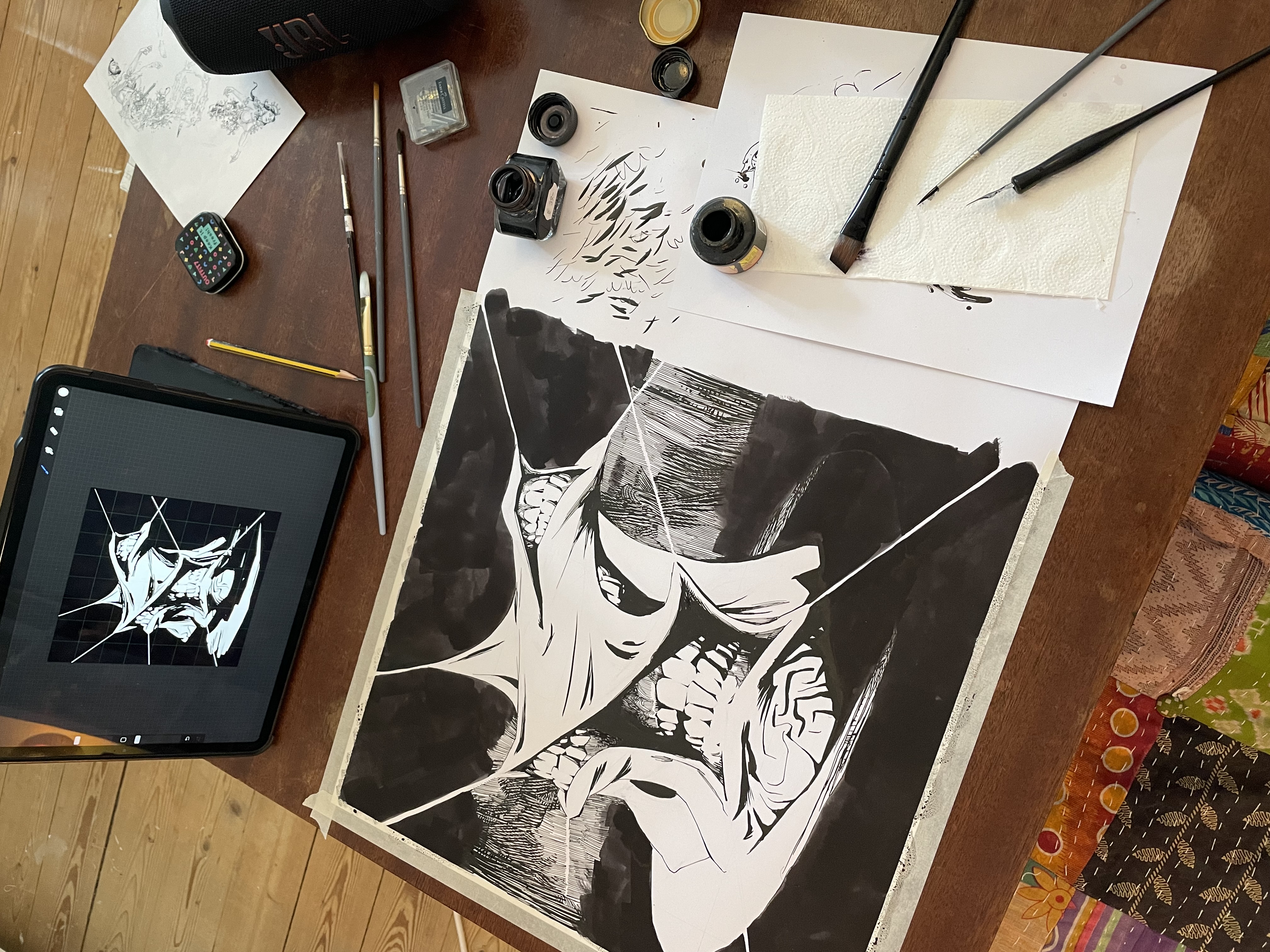 When my friend told be about their latest singing-screaming project, I somehow felt inspired to add my contribution. One bottle of black ink and a few weird reference pictures later, the soon-to-be album was flashing their brand new teeth on the cover.